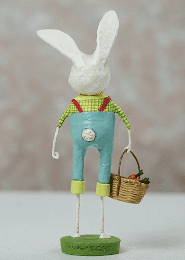 Johnnie Lightfoot by Lori Mitchell is all the confidence YOUR DECOR will need to enjoy this Easter’s festivities.  Older and wiser with a bit more experience at these holiday things, Johnnie is noticeably more relaxed and ready to enjoy himself.  Rolled-up overalls, bright yellow shirt and the requisite Sunday-best tie … he’s even brought a gift for the hostess!  I’d say Johnnie Lightfoot has this holiday mastered.